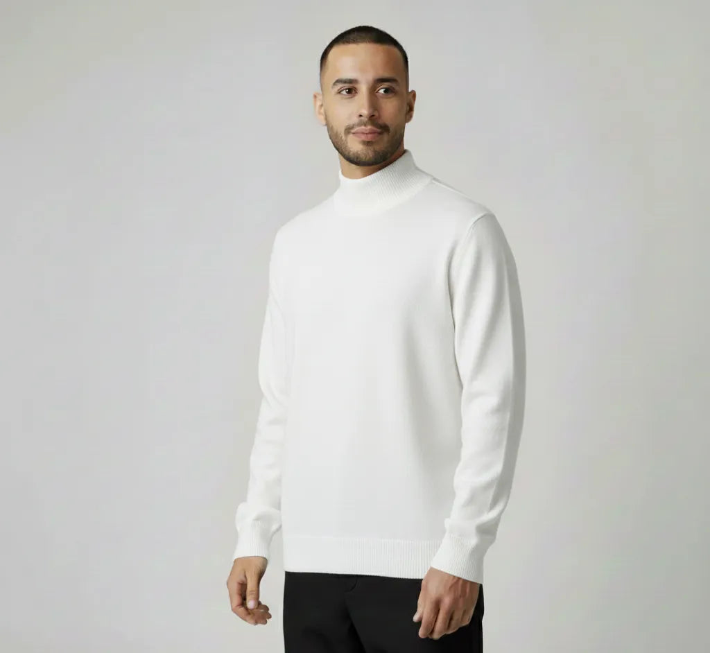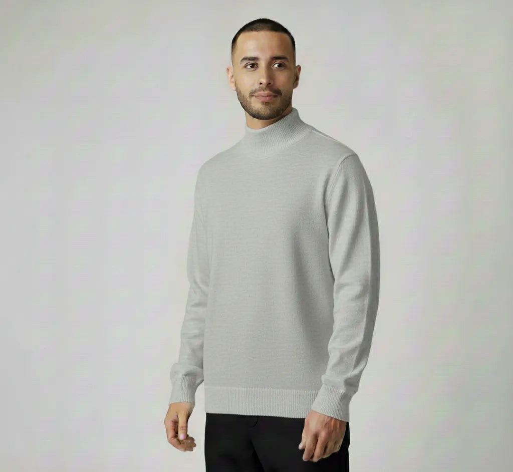 This refined wool knit delivers understated sophistication through its contemporary mock neck and fine-gauge construction. The tapered athletic silhouette creates a polished appearance that transitions seamlessly across seasons—lightweight for spring and autumn layering, substantial enough for winter warmth. Its streamlined profile integrates effortlessly beneath tailored blazers and outerwear, making it an essential piece for professionals seeking a refined, versatile foundation. The smooth weave and precise fit elevate casual styling while maintaining the comfort and practicality demanded by modern wardrobes.